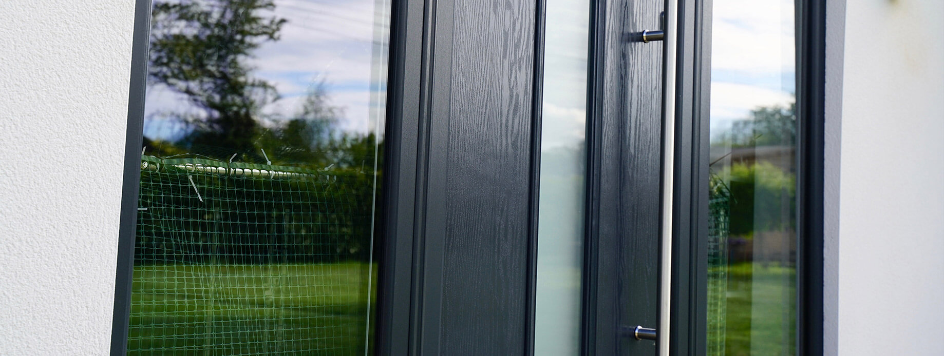 Yes, we can supply doors with composite side panels. You can choose matching colours and glazing or go with something contrasting.